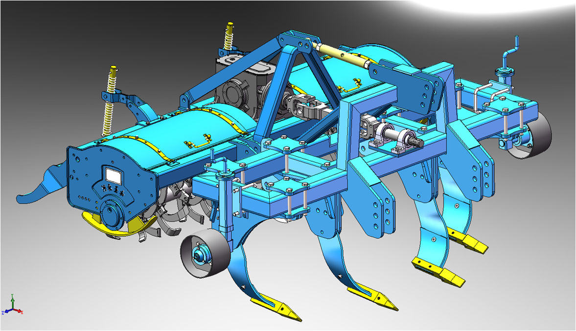 1SZL系列深松整地聯合作業機是一種新型土壤深松和耕整與一體的機具。該機打破以往只深松不耕整的傳統農藝,一方面滿足對于干旱鹽堿地塊的深松,另一方面滿足農作物播種前土壤的耕整。該機由前部深松機,后部耕整機組合而成。深松鏟采用特種弧面倒梯型設計,作業時不打亂土層,不翻土,實現全方位深松,形成貫通作業行的“鼠道”,適用于旱作土地打破犁底層,加深耕作層,并適用于治理黏重土質、鹽堿、漬澇、干旱缺水區、緩坡地的水土流失等中低產田,具有明顯的蓄水保墑效果;該機適用于不同土質及秸稈覆蓋量的土壤進行作業,整機采用高強度框架結構,主梁離地、梁與梁之間距離均超過60厘米,避免堵塞,特別是在秸稈覆蓋量大的地塊作業不會產生壅堵,深松鏟具有高強度和高耐磨性,使整機強度全面提高。前深松,后耕整,一次作業后地表平整、土壤蓬松,達到種床要求,減少農民耕作成本。