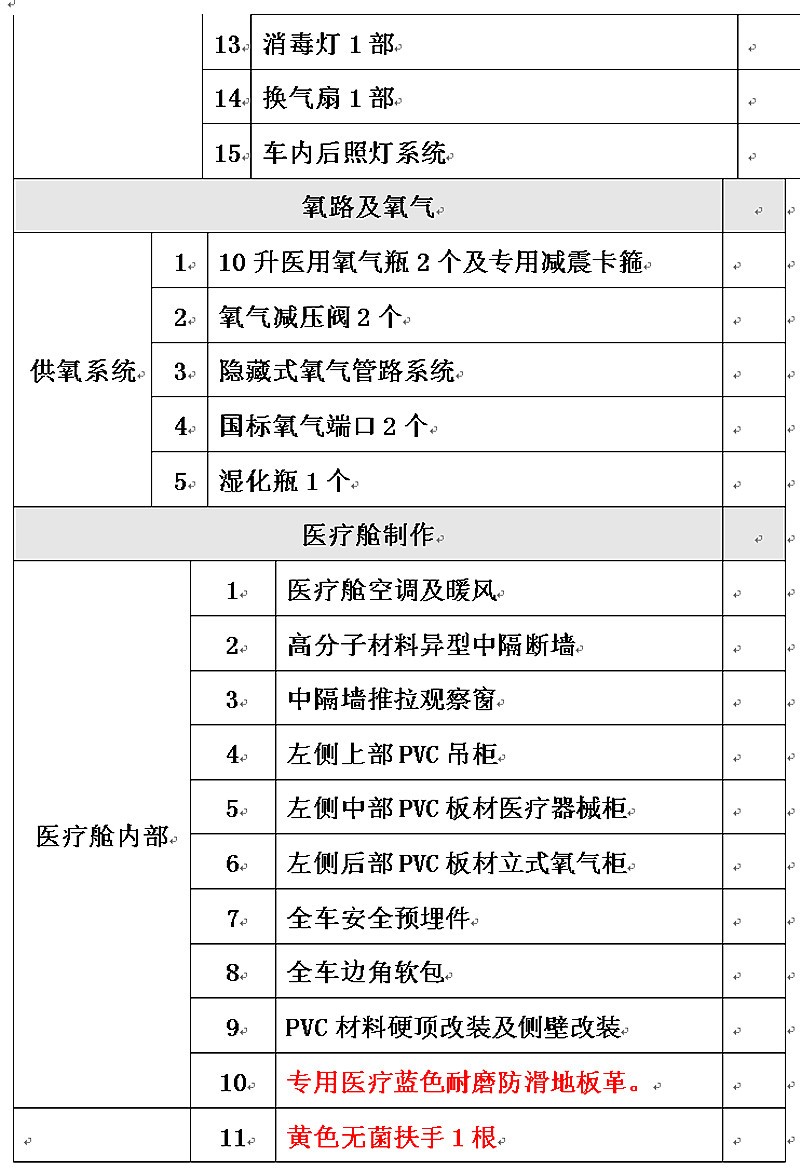 醫(yī)療艙監(jiān)護(hù)型配置清單