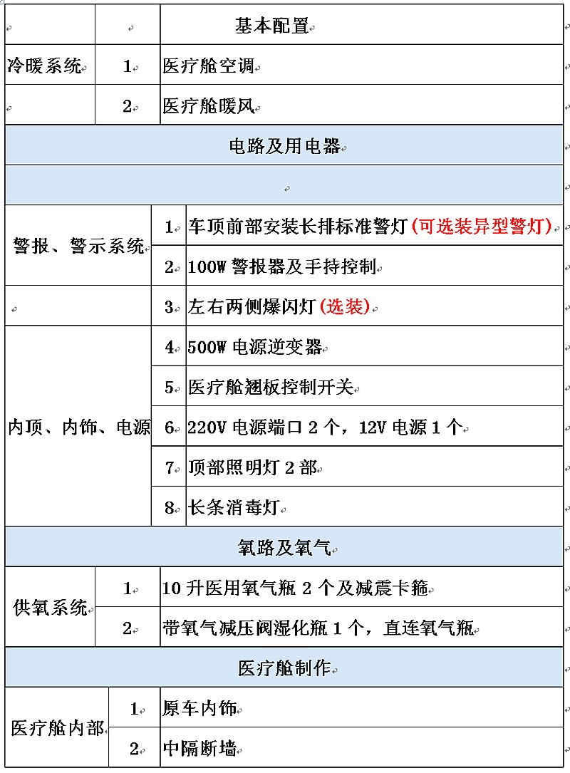 醫(yī)療艙監(jiān)護(hù)型配置清單