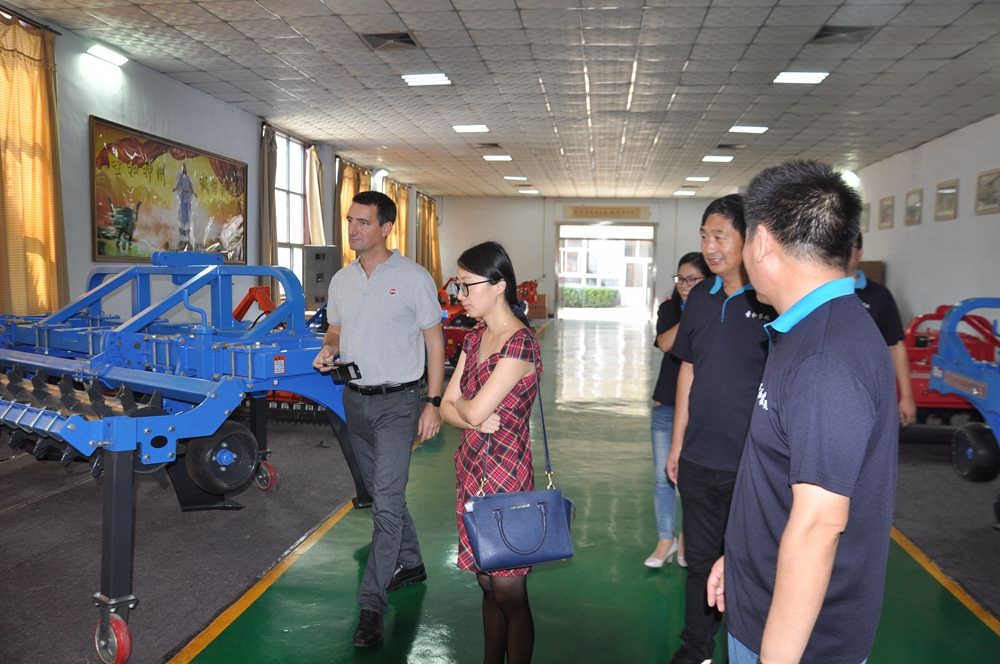 圣和公司董事長王新芳、總經(jīng)理師西峰熱情迎接并接待了Yannck Sellin先生。董事長王新芳詳細(xì)向Yannck Sellin先生介紹了圣和公司的發(fā)展歷程技術(shù)力量、產(chǎn)品和公司管理以及企業(yè)文化,通過企業(yè)宣傳片對圣和公司有更多的了解和認(rèn)識,就國際國內(nèi)農(nóng)機(jī)行業(yè)與未來發(fā)展進(jìn)行了交流與溝通。隨后,在董事長王新芳及總經(jīng)理師西峰全程陪同下,Yannck Sellin先生參觀了日新月異的現(xiàn)代化生產(chǎn)車間,圣和公司因地制宜地加大農(nóng)業(yè)機(jī)械科技創(chuàng)新與研發(fā)投入,發(fā)展現(xiàn)代化農(nóng)業(yè)機(jī)械設(shè)備,保障農(nóng)業(yè)機(jī)械的不斷創(chuàng)新,追求品質(zhì)卓越,推動農(nóng)業(yè)發(fā)展。