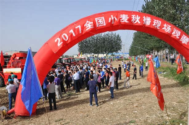 2017年9月22日,全國小麥秋播現場觀摩暨技術培訓班在石家莊市辛集市隆重舉行。此次觀摩會由農業部全國農技中心主辦,河北省農業技術推廣總站牽頭,河北省農機修造站承辦。來自天津、河北、山西、上海、江蘇、安徽、山東、河南、陜西、湖北、重慶、四川、甘肅、貴州等省(自治區、直轄市)農業技術推廣站(總站)代表、有關專家等200余人參加了此次觀摩會。圣和農機攜旗下播種神器---2BFSG-12(12)(200)深松旋耕施肥撒播機亮相并且現場作業演示。